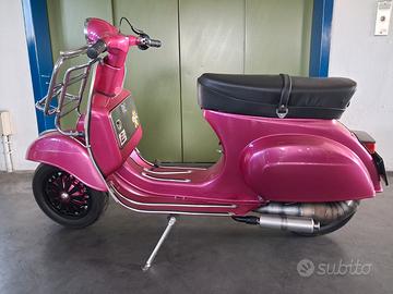 Monta carter vespa 125 et3, con albero anticipato, cilindro 130 Malossi con aspirazione al cilindro tramite pacco lamellare, carburatore 28 valvola piatta, accensione Parmakit, campana denti dritti con frizione 4 dischi rinforzata( da sostituire dischi perché consumata), marmitta LVN Exaust, gas rapido.
