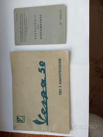 Vespa 50 3 marce luglio 1965 UNIPRO' CERTIFICATA ASI - Faro Rotondo sportello motore piccolo - fanalino posteriore metallico _ Meccanica completamente revisionata e perfettamente funzionante - Gomme nuove, compresa scorta, marmitta nuova - Targata e revisionata (scad. luglio 2025) - Libretto Uso e Manutenzionr originale-