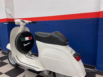 Piaggio - Vespa 50 Special 3V - 1972 3 marce Sella nuova, gomme nuove, cerchi nuovi, supporto ruotino di scorta nuovo, ruotino di scorta con cover nuovi, manopole nuove, scritte nuove, nasino e fanale posteriore nuovi, cromature pedana con bordino scudo in alluminio e copri pedana in gomma nuovi Riverniciato nel colore originale "Bianco Spino" Prima versione 1972 a 3 marce Proveniente da una collezione, motore funzionante da riavviare Piccoli "segni" dovuti agli anni Completa di chiavi originali Libretto italiano originale dell'epoca Numero di telaio e numero di motore perfettamente leggibili " V5B1T *2938* ".