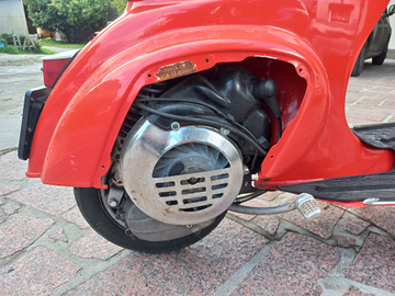 La Vespa è stata riverniciata del suo originale Rosso Piaggio Corsa.