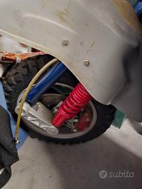 Totalmente restaurata, con blocco 130 polini, scarico Fabrizi, accensione elettronica polini, ammortizzatore posteriore bitubo, freno a disco anteriore con forcella zip. Da finire collegamento freno anteriore ed installazione verniciatura parafango anteriore.
