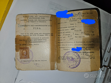 Vespa Piaggio 50 Sportellino Piccolo Libretto.