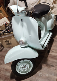 Bellissima completa vendo da collezione privata personale Vespa 50 sportellino piccolo ,del marzo 1964 restaurata 15 anni fa e sempre rimasta in taverna all asciutto, come potrete vedere anche dal pavimento in laminato....la Vespa è stata sabbiata e restaurata mantenendo i suoi pezzi originali dell epoca ,sono stati utilizzati fondo e vernice originali max mayer e la verniciatura è stata eseguita da una carrozzeria seria.