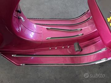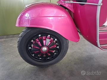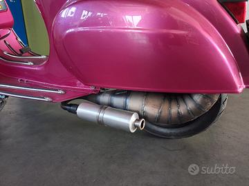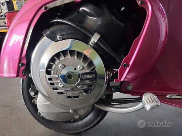 Piaggio vespa 50L anno 1969. Monta carter vespa 125 et3, con albero anticipato, cilindro 130 Malossi con aspirazione al cilindro tramite pacco lamellare, carburatore 28 valvola piatta, accensione Parmakit, campana denti dritti con frizione 4 dischi rinforzata( da sostituire dischi perché consumata), marmitta LVN Exaust, gas rapido. Forcella et3 con cerchi da 10, gomme dunlop scootmax 100/90/10. Libretto nuovo, targa sospesa, dispongo anche del libretto originale a libro. Possibilità di spedizione.