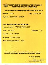 Vespa "Struzzo" restaurata, iscritta al registro moto d'epoca, targa originale