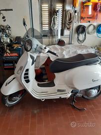 Vendo, causa inutilizzo, Piaggio Vespa GTS 300 Super bianca, in OTTIME CONDIZIONI, immatricolata a ottobre 2008, con 21466 chilometri, cupolino fumè e portapacchi posteriore cromato originali già montati; in aggiunta, portapacchi anteriore cromato e bauletto in tinta, anch'essi entrambi originali, ancora inscatolati e mai utilizzati. Unico (e affezionato) proprietario, sempre tenuta in box o al coperto. Al momento il motoveicolo si trova fermo e ricoverato al coperto in proprietà privata.