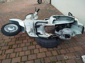 Inoltre la Vespa è dotata ancora dei suoi copriruote originali, del portapacchi e di un ottimo parabrezza.