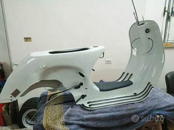 Restauro integrale con SOSTITUZIONE di: cavi/guaine di trasmissione (gas, freni, frizione); impianto elettrico volano; guarnizioni; gommini passacavo; strisce in gomma; cuscinetti di sterzo; paraoli; stop; gemme indicatori di direzione; strisce gomma/poggiapiedi; boccola frizione; sellino; REVISIONE di: impianto elettrico; carburatore; 42.000 Km percorsi; sostituzione testata, pistone, cilindro e scarico a 41.000 Km (con luci carter originale/non raccordato). Portapacchi posteriore.