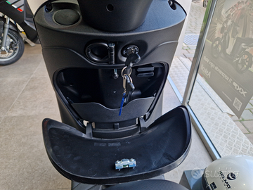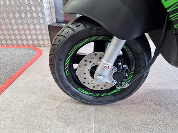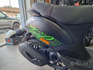 Scooter dalle piccole dimensioni ma dalla massima resa. Dotato di un vano sottosella in grado di custodire un casco integrale, un portaoggetti che ti permetterà di conservare documenti e altri oggetti indispensabili, infine un comodissimo gancio portaborse posizionato sotto il manubrio. Questa versione speciale, dal colore total black arricchito con grafiche verde fluo, rende questo mezzo giovane e sportivo.