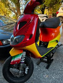 Vendo a malincuore Piaggio zip sp 1998, cilindrata 70 tutto MHR carburatore 19, fatto da PGM, sospensioni rs24, gas rapido, pompa e pinza ant radiali, gomme semislick nuove, carene Malossi, regolarmente targato e assicurato, scooter in rodaggio, ha nemmeno 1 ora, usato per 3 giri di palazzo. Ha impianto elettrico a batteria, faro, stop fisso, strumenti contagiri e temperatura digitali. No perditempo per favore.