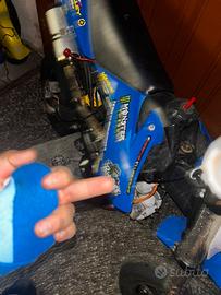 vendo per inutilizzio essendo che mio figlio e cresciuto non la usa piu. carene nuove prese e lai usate motore con un massi 30 kilimotri appena messo carburatore con un po di difetti ai getti ma funziona gomme abbastanza usate ma ancora buone greni davanto e dietro perfettante funzionatnti TRATTABILE