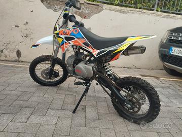 vendo Pit bike di mio figlio ormai cresciuto. Kayo 110cc a 4 marce semiautomatica. Non ha frizione e accensione a pedalina. In regalo anche una tuta da moto per ragazzo. ruote 14-12