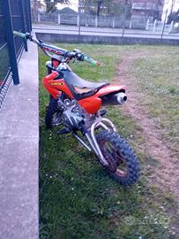 vendo pit bike 125 per mancato utilizzo e per passaggio a modo più grande. modifiche fatte: -carene riverniciate arancioni -pinza anteriore cambiata -copertone posteriore sostituito da poco NO PERDITEMPO Prezzo trattabile solo dopo visione