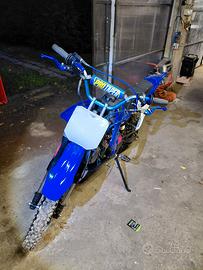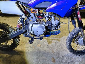 vendo pit bike 125cc 4t, la moto è stata completamente restaurata meccanicamente, sono stati cambiati cuscinetti canotto sterzo e forcellone, gas rapido, manopole Protaper e nuovo impianto con stacca massa e chiavi, sella nuova.monta una centralina racing impostata solo sul fornire un limitatore, anch'esso variabile e selezionabile(fornisco anche originale), successivamente è stata cambiata gomma e cerchio posteriore con disco annesso e pompa freno posteriore, sostituite anche leva frizione e pompa freno anteriore e sono stati spurgati entrambi i freni.