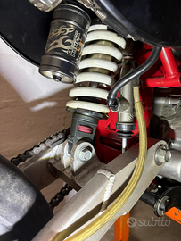Migliorie: forcella ant. con doppia regolazione estenzione e ritorno, ammortizzatore posteriore Performance SHOX , perni ruote ant. e post. con diametro maggiore da 12 a 14 con cuscinetti ruote e distanziali, pompe freno ant. e post. Brembo.