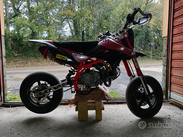La pit monta motore 160 con piattelli in titanio, rimozione completa avviamento a pedale nella parte interna, pistone alte prestazioni nicasil e rimozione contro albero sulla testata con conseguente aumento dei giri massimi.