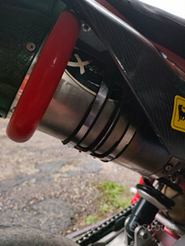 Al posteriore monta un mono sachs di derivazione r6 a cui è stata sostituita la molla con una da pit bike per renderla più adatta al mezzo, anche questo pluritegolabili.