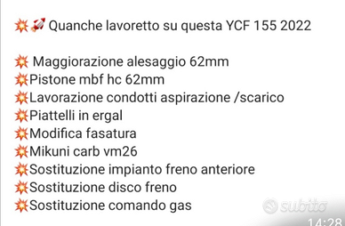 Pitbike vendo x non utilizzo con vari pezzi Ycf factory motore Gpx 155 portato a 172 con elaborazione elencata nelle foto ore 15 di utilizzo prezzo poco trattabile
