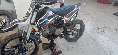 Vendo pit bike kavo con motore yx160cc la moto e stata rimessa completamento a nuovo pinza freni scarico in carbonio paramani acerbis sella nuova carburatore e filtro aria fasce pistone con 3 ore di usc ruote 19ant 16post disci anteriore e posteriore per qualsiasi info contattatemi prezzo trattabile