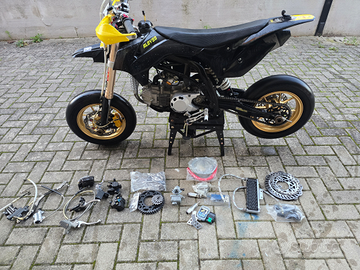 Anno 2022. Ore di utilizzo 22. Freno a pollice pitom.Cambio rovesciato Zaffoni.Mono tripla regolazione. Forcelle Fast Ace doppia regolazione. Diverse corone e pignoni. Diverse pompe freno anteriore e posteriore. Cavalletto e cavalletto idraulico compresi. Motore 172 cm con testa lavorata da Tedeschi. Radiatore maggiorato. Pneumatici ottimo stato.Carburatore Mikuni originale. Paramani.Freno formula.Sarico Lem. Pedane rialzate con scorta per ricambio.