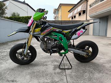 Vendo pit bike motard Ayrton Hurricane con motore GPX 155. La moto è del 2018, sempre tenuta bene con manutenzione regolare. Attualmente ha circa 38 ore, ma il motore è stato sostituito da 2 ore con unità nuova (ho il motore vecchio per pezzi di ricambio). Appena terminato il rodaggio, pronta per correre in pista con tutti gli accessori necessari.