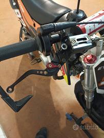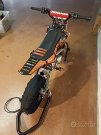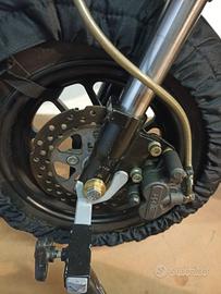 Vendo come da titolo Pit Bike/Ovale 110 Automatica. La moto è una Lem interamente rifatta. Cerchi da 10" serie Ovale Impianto frenante Maggiorato serie Aprilia con doppio pistoncino. Dischi freno Nuovi. Corona e pignoni 15 / 16 / 17 e catena Regina Nuovi. Termocoperte Capit Nuove Motore revisionato e tagliandato, cedo anche altro motore completo per pezzi di ricambio, più vari alberi cilindri e carburatori compatibili. Ho veramente tanti pezzi. Filtro aria lavabile Polini. Cedo altre serie di gomme alcune nuove, medie, soft e Rain. Cavalletti anteriore e posteriore più il laterale arancione presente in foto per manutenzione. Accensione elettronica con batteria a gel Nuova ( solo di batteria 50€). Forcella rifatta completamente ( concessionaria Kawasaki Mozzo moto) di Cittadella PD, chiedete pure. Tubi freno in treccia. Qualsiasi prova. Moto perfetta. Vendo perché Mio figlio è rimasto Fedele alla minimoto. Usata veramente pochissimo. Grafica e sella rifatta nuova. No perditempo. Grazie. Solo gente seria.