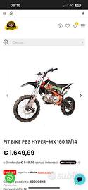 Pitbikr 160cc pbs hyper perfettamente funzionante 4 tempi 4 marce. Moto in ottime se non perfette condizioni generali, olio motore appena cambiato. Monta: Gas rapido Carburatore NIBBI 26 nuovo (pagato 80 euro solo lui) non e una cinesata. Tappo serbatoio in ergal Cerchi 14/17 (versione piu alta in commercio) Grafiche kawasaki kx110 Gomme al 90% Ammortizzatore mono regolabile Forcelle regolabili Scarico racing con power bomb. Astenersi perditempo allego come ultima foto il valore della moto nuova. Non scambio non spedisco