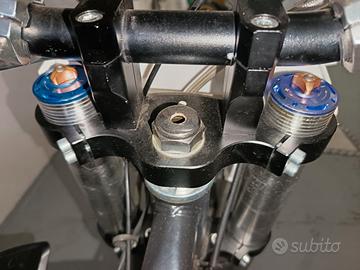 Pit bike PBS spark 2024 con motore 140 con 6 ore da 15 cv,sostituito albero a camme(con modello alzata maggiorata),testa lavorata,carburatore da 24 mm eliminato ingranaggi avviamento, pastiglie freno nuove,pompa freno anteriore nuova,mono post dnm tripla regolazione appena montato. Sostituito olio forcella,gomme nuove, più altro treno di gomme.