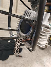 Vendo pitbike pitom variante alta con motore revisionato ha fatto giusto il rodaggio portato a 172 con cilindro in nikasil molle rinforzate e piattelli in ergal, ho le foto per dimostrare i lavori, sospensioni full mupo, serbatoio in alluminio, diversi ricambi tra cui un cambio rovesciato al momento monta tradizionale,appena montata trasmissione nuova, insieme alla moto do I Cavalletti e le termocoperte, pronta per la stagione! Vendo perché col bambino piccolo non ho più tempo