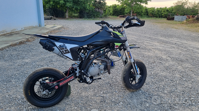 Vendo pit bike supermotard pitom telaio variante alta pronto pista. Sospensioni dnm dietro e avanti, motore con cilindro e pistone con 0 ore da rodare yx 160 con testa preparata da Tedeschi e cambio spessorato carburatore mikuni 26 vm 606 impianto frenante formula, pasticche anteriori nuove gomme all 80 %. Cambio rovesciato. Scarico lm completo.
