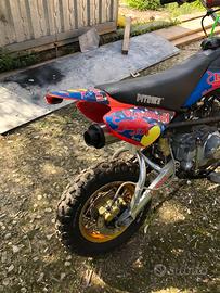 Pit bike 125 4 tempi 4 marce, gira come un orologio, attualmente in uso, cerchi 10/12, gomme nuove, pastiglie freni nuove, pinza anteriore e tubo nuovi, olio forcelle cambiato da poco, tagliandata regolarmente, non perde un colpo, parte alla prima pedalata, sempre ben tenuta. Vendo perche la mia compagna vuole cambiare con una pit piu alta.