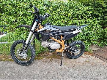 La THUNDER 125 17-14: L'Off-Road Ride Definitivo* Entra nel vivo dell'azione con la THUNDER 125 17-14, la moto creata per i giovani avventurieri e i futuri campioni che cercano prestazioni senza compromessi. Questa potente due ruote combina agilità, forza e una robustezza ineguagliabile, con un design accattivante che non passa inosservato.Al cuore della THUNDER 125 17-14 batte un motore monocilindrico da 125cc, raffreddato ad aria, che fornisce tutta l'energia necessaria per affrontare salite impegnative e per sfrecciare sui tratti veloci. Grazie al cambio manuale a 4 marce (N-1-2-3-4), hai il pieno controllo della potenza e puoi adattarti con precisione a ogni tipo di terreno. Il kickstarter affidabile assicura un avviamento rapido e senza problemi, ovunque tu sia.Il punto di forza della THUNDER 125 17-14 è la sua speciale configurazione delle ruote: un pneumatico anteriore da 17 pollici e uno posteriore da 14 pollici (entrambi con cerchi in acciaio e pneumatici specifici per off-road) garantiscono un equilibrio ideale tra maneggevolezza e grip. Questa combinazione ti permette di affrontare curve strette con agilità e di mantenere una stabilità eccellente sui terreni irregolari. Con un'altezza da terra di circa 285 mm, superare gli ostacoli non sarà più un problema.La tua sicurezza è la nostra priorità. Per questo, la THUNDER 125 17-14 è equipaggiata con freni a disco idraulici sia all'anteriore che al posteriore, che offrono una frenata potente e precisa in ogni situazione. La forcella anteriore idraulica da 770 mm e l'ammortizzatore posteriore idraulico regolabile da 350 mm garantiscono un'eccellente assorbimento degli urti, contribuendo a un'esperienza di guida confortevole e controllata. Il telaio in acciaio robusto e il silenziatore in alluminio sottolineano la qualità costruttiva e la durabilità di questa moto.