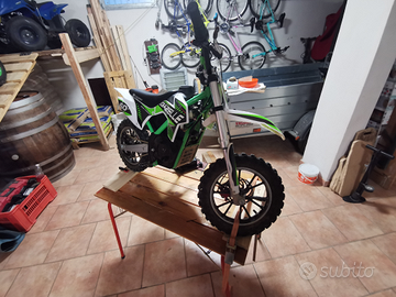 Bellissima moto da cross per bambini, modello da 500watt per 24 volt, 2 batterie da 12v 12ah sane(vedere in foto), completa di carica batterie.