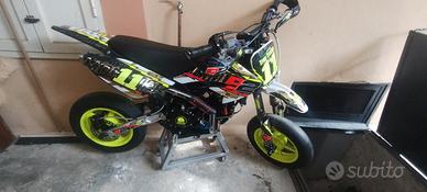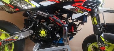 vendo pitbike pit bike Mobster B2 by Avotecnica la moto è stata acquistata la scorsa estate, e MAI usata per mancanza di tempo e trasporto. la moto monta motore gpx 155, preparato da Dario Lucente con piattelli ergal e rimozione decompressore, rimozione leva avviamento, cambio spessorato, collettore maggiorato. forcella fastace, mono DNM Hornet, pinza freno Nissin derivazione Honda Sh. è stata completamente smontata e revisionata, lubrificata in ogni sua parte. è stato montato contaore, impianto frenante posteriore con zero ore. a corredo do vari ricambi e accessori, come corone,pignoni, vari filtri aria, gomme Pirelli Diablo in più, leve ricambio,manubrio, serbatoio, coperchio accensione,etc compreso di termocoperte e cavalletto