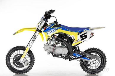 PITBIKE RXF 125 17'14' MOTORIZZAZIONE Tipo motore: Monocilindrico 4T Cilindrata: 119,6 Alesaggio: 52,4 mm x 55,5 millimetri Raffreddamento: Aria Carburatore: Molkt PZ26 Frizione: Multidisco a bagno d'olio Accensione: Microprocessore CDI Messa in moto: Calcio Trasmissione: 4 rapporti (N1234) Trasmissione finale: Catena rinforzata PARTI CICLO Sospensioni anteriori: Regolabile Volt V1 770mm Sospensioni posteriore: Regolabile Volt V1 357mm Forcella: Alluminio, monoblocco Volt racing Braccio oscillante: Acciaio rinforzato Freno anteriore: Disco idraulico 2 pistoncini Freno posteriore: Disco idraulico 1 pistoncino Pneumatici anteriori: 17" Pneumatici posteriori: 14" Scarico: Alluminio da corsa Riserva:4,7 Lt DIMENSIONI CICLO Misure veicolo: 1610X760X1130 Altezza da suolo: 240mm Altezza sella: 840mm Passo: 1200mm Peso: 73 Kg Visitate il nostro sito internet rinaldomotors, troverete tutte le moto con foto, video e descrizioni dettagliate Consegna in tutta la provincia Gratis Siamo una concessionaria specializzata nella vendita di moto, quad, moto d 'acqua, scooter, minicar, minimoto, moto da cross, auto etc... Abbiamo diverse sedi, contattateci per visionare i veicoli, siamo a: Pietramontecorvino (Fg), Termoli (Cb) e Campobasso. Assicurazione e disbrigo pratiche  di voltura e immatricolazione direttamente in sede.   Extra sconto su abbigliamento e accessori riservato a tutti i clienti che acquistano una moto presso il nostro showroom   Possibilita di finanziamento anche senza anticipo         Ritiro usato con super valutazione e incentivo rottamazione        (specificare anno modello versione km stato estetico gomme cronologia tagliandi proprietari e zona di residenza i dati richiesti sono tutti necessari per un preventivo da confermare dopo visione)    Spedizione in tutta italia    Permute con auto moto quad pit bike moto d acqua bici     Tutte le nostre offerte di moto nuove e usate sono disponibili sul nostro sito * RINALDOMOTORS