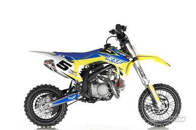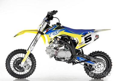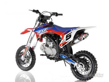 PITBIKE RXF 125 17'14' MOTORIZZAZIONE Tipo motore: Monocilindrico 4T Cilindrata: 119,6 Alesaggio: 52,4 mm x 55,5 millimetri Raffreddamento: Aria Carburatore: Molkt PZ26 Frizione: Multidisco a bagno d'olio Accensione: Microprocessore CDI Messa in moto: Calcio Trasmissione: 4 rapporti (N1234) Trasmissione finale: Catena rinforzata PARTI CICLO Sospensioni anteriori: Regolabile Volt V1 770mm Sospensioni posteriore: Regolabile Volt V1 357mm Forcella: Alluminio, monoblocco Volt racing Braccio oscillante: Acciaio rinforzato Freno anteriore: Disco idraulico 2 pistoncini Freno posteriore: Disco idraulico 1 pistoncino Pneumatici anteriori: 17" Pneumatici posteriori: 14" Scarico: Alluminio da corsa Riserva:4,7 Lt DIMENSIONI CICLO Misure veicolo: 1610X760X1130 Altezza da suolo: 240mm Altezza sella: 840mm Passo: 1200mm Peso: 73 Kg Visitate il nostro sito internet rinaldomotors, troverete tutte le moto con foto, video e descrizioni dettagliate Consegna in tutta la provincia Gratis Siamo una concessionaria specializzata nella vendita di moto, quad, moto d 'acqua, scooter, minicar, minimoto, moto da cross, auto etc... Abbiamo diverse sedi, contattateci per visionare i veicoli, siamo a: Pietramontecorvino (Fg), Termoli (Cb) e Campobasso. Assicurazione e disbrigo pratiche di voltura e immatricolazione direttamente in sede. Extra sconto su abbigliamento e accessori riservato a tutti i clienti che acquistano una moto presso il nostro showroom Possibilita di finanziamento anche senza anticipo Ritiro usato con super valutazione e incentivo rottamazione (specificare anno modello versione km stato estetico gomme cronologia tagliandi proprietari e zona di residenza i dati richiesti sono tutti necessari per un preventivo da confermare dopo visione) Spedizione in tutta italia Permute con auto moto quad pit bike moto d acqua bici Tutte le nostre offerte di moto nuove e usate sono disponibili sul n