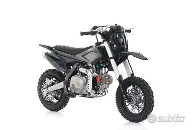 M.T Moto service propone in vendita Pitbike Thunder 70 è una mini-cross pensata per bambini dai 5 ai 10 anni che vogliono avvicinarsi al fuoristrada in sicurezza e divertimento.Monta un motore 70 cc 4 tempi con avviamento elettrico e cambio automatico Rev & Go, facile da usare anche per i più piccoli. Raggiunge circa 60 km/h ed è dotata di freni a disco idraulici anteriori e posteriori per una frenata sicura.Il telaio in acciaio è leggero e robusto (peso circa 55 kg), con sospensioni idrauliche e ruote tassellate da 10'' adatte ai terreni sterrati. L'altezza sella di circa 60 cm la rende accessibile ai giovani piloti. disponibile ad un super prezzo di 990,00 euro importo finanziabile con e senza busta paga!
