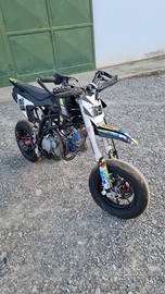 Vendo pit bike supermotard pitom telaio variante alta pronto pista. Sospensioni dnm dietro e avanti, motore con cilindro e pistone con 0 ore da rodare yx 160 con testa preparata da Tedeschi e cambio spessorato carburatore mikuni 26 vm 606 impianto frenante formula, pasticche anteriori nuove gomme all 80 %. Cambio rovesciato. Scarico lm completo.