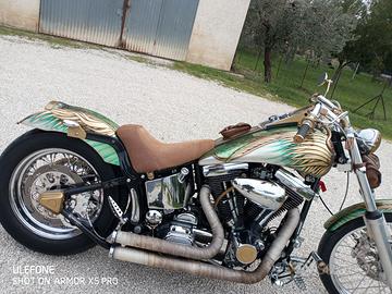 OMOLOGATA E REVISIONATA VENDO PERMUTO ITALIANA RISPONDO SOLO A TELEFONATE O WHATSAPP CON FOTO E DESCRIZIONE E PROPOSTA MOTO NON REALIZZABILE OGGI PERCHE NECESSITEREBBERO PIU' DI 40000? E NON SAREBBE LEI Harley su base softail 1340 (+++) leggermente elaborata frizione a secco primaria esterna cerchio ant 21 dischi e pinze magg ecc...e tanto altro omologata bella unica le foto parlano da sole tagliando accurato appena fatto sostituzione motorino d' avviamento bella unica realizzata totalmente su richiesta con metodi artigianali sia negli accessori che nella verniciatura fatta a mano stile piuma d'oro se potete permettervela venite a vederla rispondo solo a telefonate solo telefonate moto adatta a chi e' alto piu' di 1,70 paolo 3467481616 grazie solo telefonate(SEMMAI LA DOVESSI PERMUTARE DEVE ESSERE QUALCOSA DI PARTICOLARE O ELABORATA SE STORICHE MEGLIO UNICA COME LA MIA HARLEY