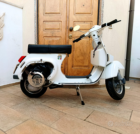Solo 2 propietari, utilizzata solo per raduni con il Vespa club e per giretti turistici in loco, restaurata totalmente professionalmente circa 4 anni fa anche il motore. Cerchi in lega SIP, Pneumatici maggiorati, antiaffondo, ammortizzatori del tipo originale YSS, faro anteriore a led, sellone biposto.
