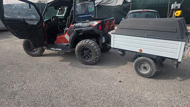polaris general 1000 aspirato 110 cv circa 9000 km nessun lavoro da fare. tagliando fatto e gomme nuove, targa bianca, verricello con circa 15 metri di cavo, con comandi interni ed esterni, perfetto per tirare i cinghiali, gancio traino, barre led , cassone ribaltabile, porte complete.