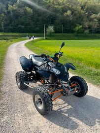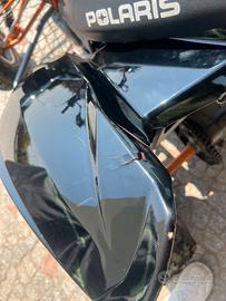 Quad Polaris Predator 500 con retromarcia, 7800km, Anno 2006, È stato eseguito il tagliando completo,con sostituzione di: Filtro olio,olio,filtro aria,candela. Gomme nuove, Batteria di avviamento nuova, Silenziatore Giannelli, Frecce,fari e stop funzionanti,pronto per circolare su strada, Doppia chiave, Altri componenti originali come il Silenziatore e le sospensioni anteriori originali fox vengono cedute insieme al mezzo,attualmente monta sospensioni anteriori regolabili. L’Unico difetto estetico lo presenta sul parafango posteriore sinistro,come da foto. Mezzo utilizzato davvero poco.