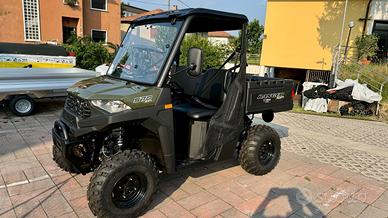 Motore Polaris Prostar 567cc, monocilindrico ad iniezione elettronica Omologazione Quadriciclo targa bianca 2 posti Trazione 2×4/4×4 e sbloccaggio differenziale posteriore Marce: avanti ridotta L, Avanti lunga H, P, N , Retromarcia R Sospensioni: Ant MacPherson con 23cm di escursione / Post a doppio braccio indipendente con 26,8cm di escursione Misure 279,8 x 144,5 x 186,8cm (Lxlxh); Altezza da terra 25,8 cm Cassone posteriore 83 x 122 x 30,5cm Colore Sage Green CTmotors QUAD Center Varese Info: Mauro Concessionario CAN-AM,POLARIS , AODES