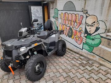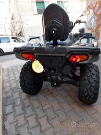Dotazioni di serie: verricello anteriore, servosterzo EPS regolabile su 3 posizioni, freno motore EBS, ADC assistente alla discesa, sella con schienale passeggero