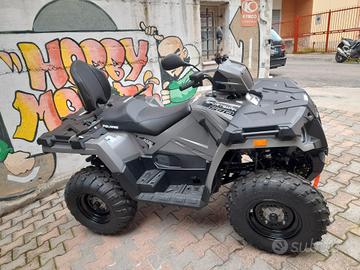Unisce la leggendaria maneggevolezza dello Sportsman 570 alla comodità di una sella più lunga per accogliere 2 persone. Il Quad ideale per escursioni in 2 con massimo comfort, sicurezza ed efficienza.