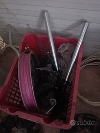 Vendo per mancanza di tempo,telaio con documenti pronti da passaggio Honda CBF 125 e un bancale di pezzi vari tra cui motore completo Honda Rebel 125, due avantreni completi Rebel 125,1 avantreno completo NSR 125, più molti pezzi per poter costruire da zero una moto .