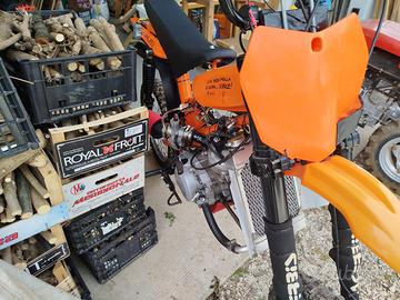Vendo prototipo motorino cross con motore MINARELLI AM6 TOP TPR 86. Risulta inoltre equipaggiato con: - forcelle RX 50 anteriori complete - ammortizzatori maxi scooter 125/250 cc - motore TPR86 preparato in carter, cilindro, pacco lamellare, carburatore valvola piatta 28. - radiatore acqua alluminio racing. Vendo con formula visto e piaciuto. Trattasi di prototipo, privo di omologazioni e non idoneo all'uso su strada. Uso saltuario su campi privati chiusi (stile Monferraglia, gare scooter cross, e simili!). Molto divertente, una mezza via tra una pitbike e un 125cc da motocross. Il solo motore come componentistica NUOVA vale 800/900€! No perditempo, grazie. Disponibile a visione e prova.