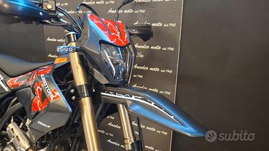 Dettagli curati e una grafica grintosa completano un'estetica che parla il linguaggio dei giovani rider, con tanto di fari a Led, strumentazione LCD e pneumatici Tubeless.