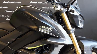 SRK 125 eredita dalle sorelle maggiori 700 e 400 il carattere sportivo e il design affilato, rendendoli però accessibili a tutti i motociclisti in possesso di patente A1.Il telaio a doppia trave in acciaio di SRK 125 è un tratto esclusivo di questa piccola streetfighter, che può così offrire un comportamento su strada dinamico e divertente. Il freno a disco singolo da 260mm all'anteriore lavora con il disco da 240mm sul posteriore ed un sistema di ABS a due canali, per gestire in sicurezza le performance del motore da 125cc raffreddato a liquido che sprigiona 15cv di potenza e 12 Nm di coppia massime.
