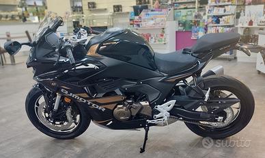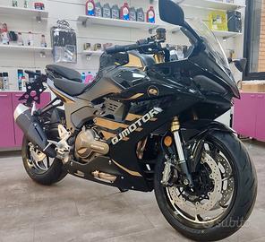 SRK 600 RS. La sigla RS indica "Sport Racing", un segmento a cui QJMOTOR dedica particolare attenzione con la sua partecipazione al campionato SBK e MotoGP. Il motore bicilindrico 4 tempi da 56 Cv offre un'erogazione lineare e garantisce un'esperienza di guida divertente, sia su strada sia in pista. Con la doppia mappatura (Standard e Sport) il controllo di trazione e l'abs. Di serie troviamo sospensioni MARZOCCHI regolabili nel precarico e in estensione, impianto frenante BREMBO con pinze radiali a quattro pistoncini e il display TFT a colori. Cerchi da 17 pollici, serbatoio da 16,5 litri e un peso di 194Kg. PREZZO CHIAVI IN MANO.
